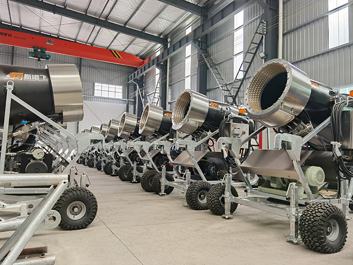 公司成立多年來,擁有自己固定生產人員和專業團隊。本公司生產的造雪機按規格分類有大型、中型、小型、微型四個品種;按使用環境分類有不帶高壓水泵和自帶高壓水泵兩大類;按走行方式分類有拖拉式走行和自主走行兩類。